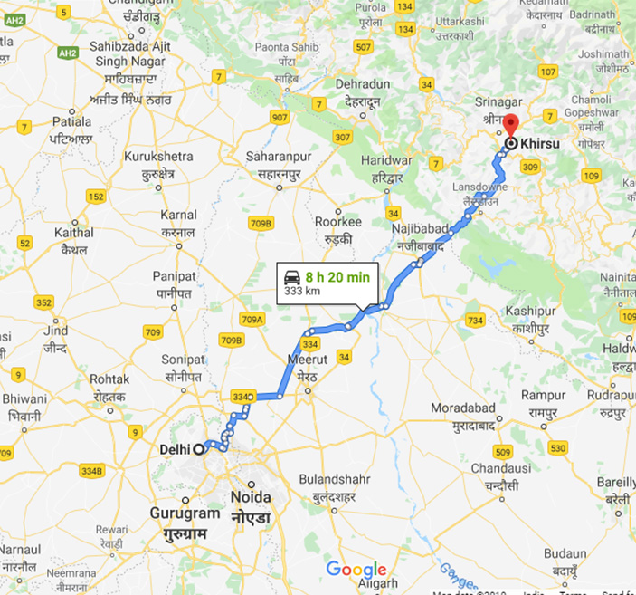 Route Map : Delhi to The Monal Homestay